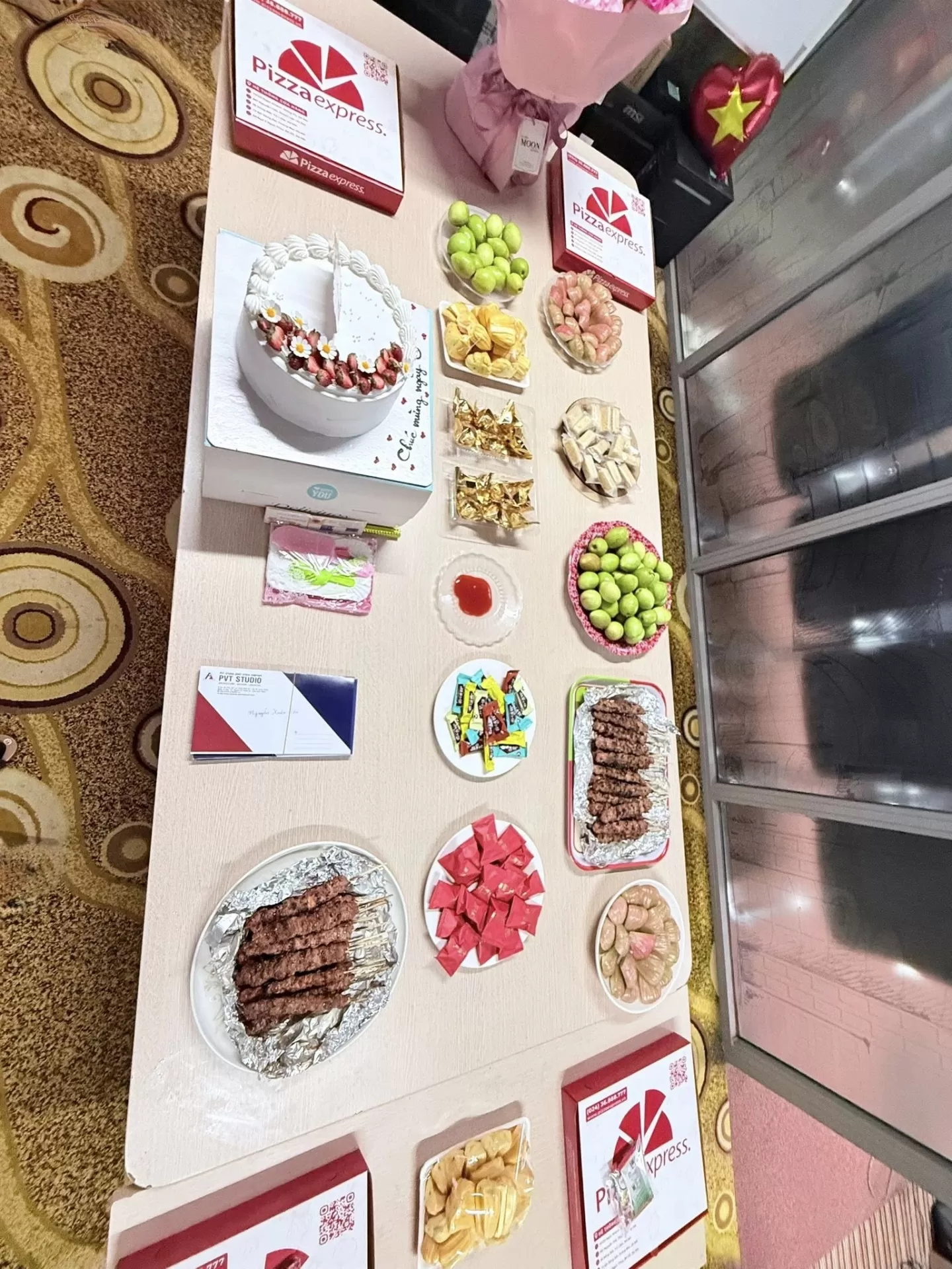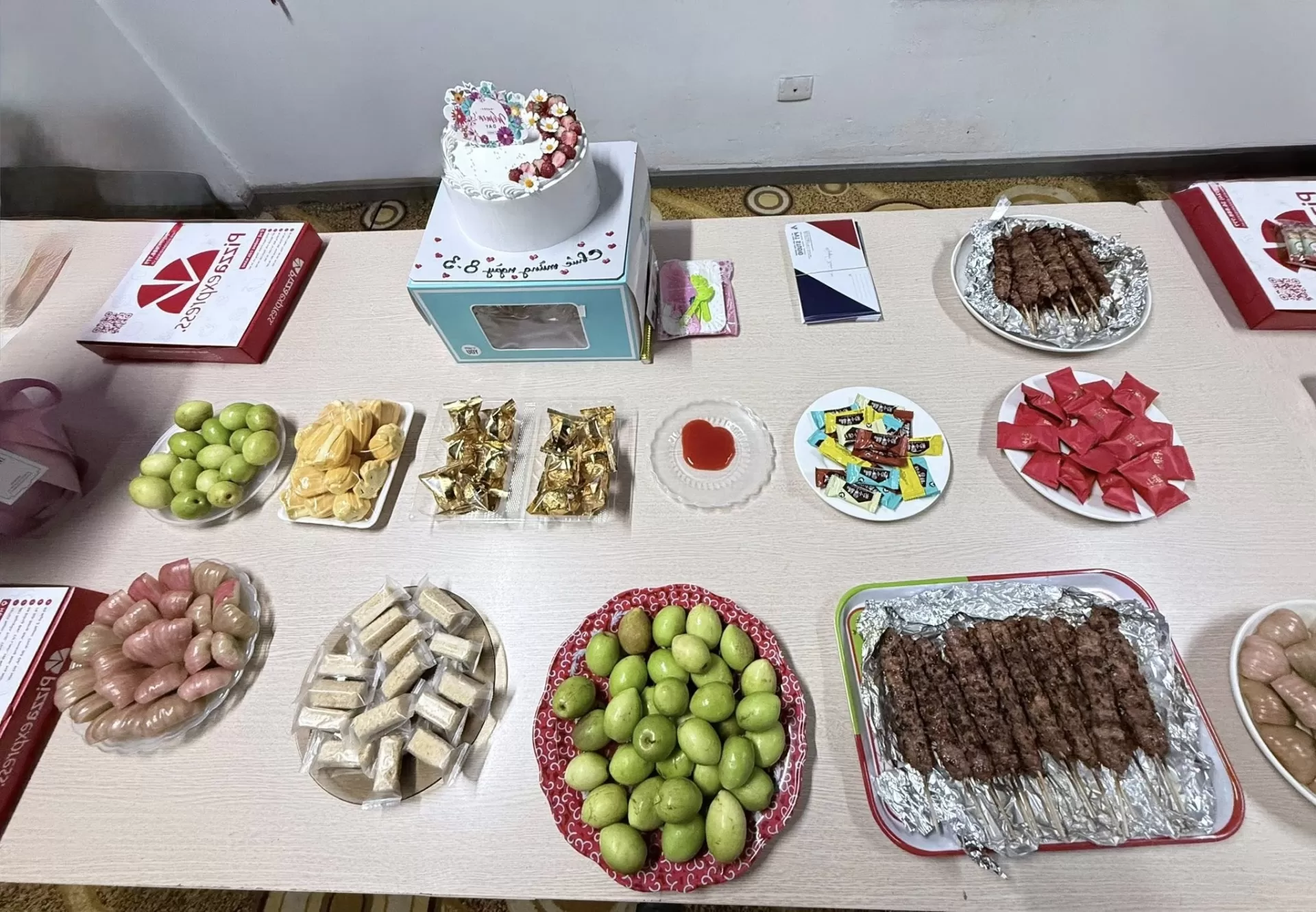 Ngay từ khi bước vào không gian sự kiện, mọi người đã cảm nhận được sự chỉn chu và tinh tế trong cách bài trí. Bàn tiệc được chuẩn bị đầy đủ với bánh kem trang trí bắt mắt, trái cây tươi, đồ ăn nhẹ và những phần quà nhỏ xinh. Không khí buổi tiệc trở nên gần gũi nhưng vẫn trang trọng, mang lại cảm giác thoải mái cho tất cả nhân viên tham dự.